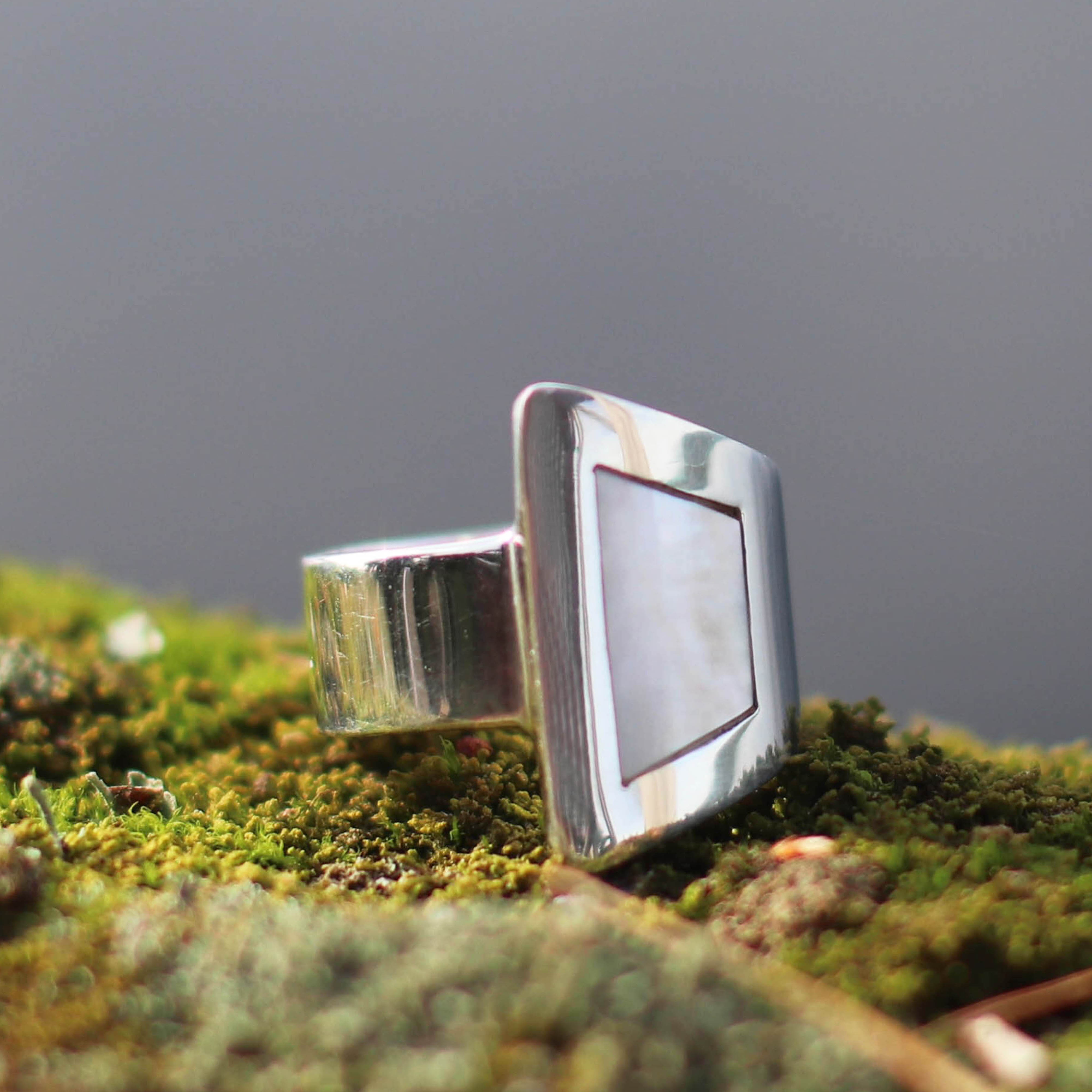 • .925 Recycled Sterling Silver with Inset White Mother of Pearl Shell