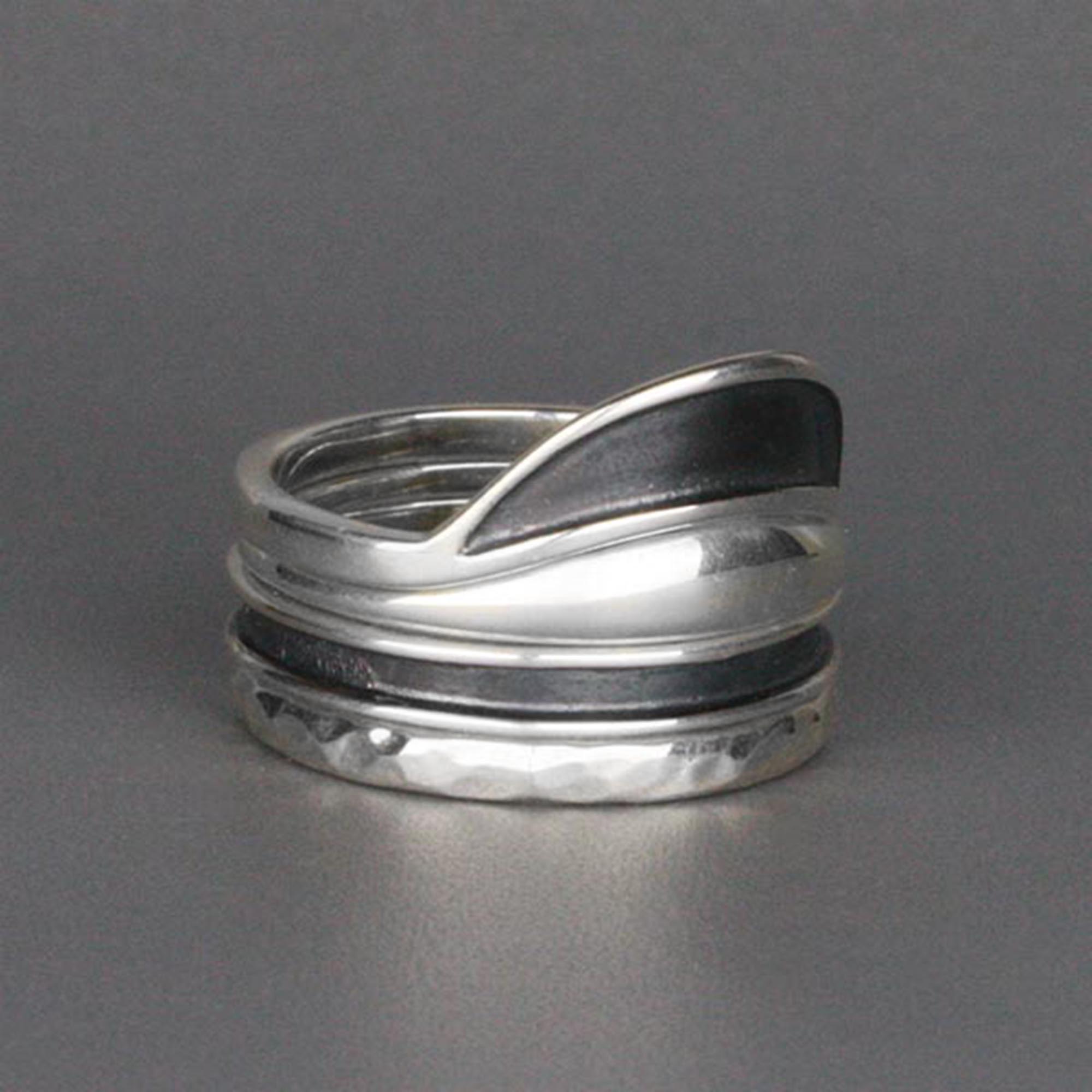 - Brushed, Hammered and Polished .925 Recycled Sterling Silver